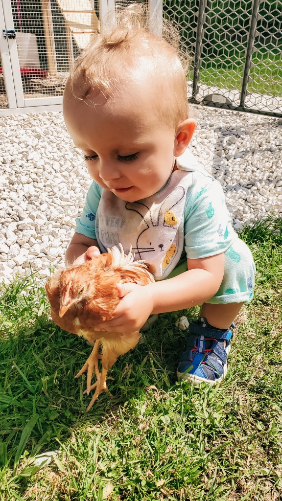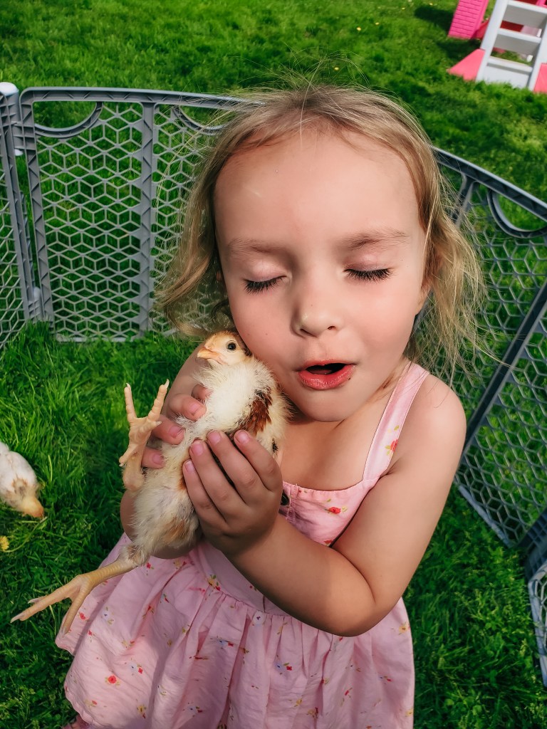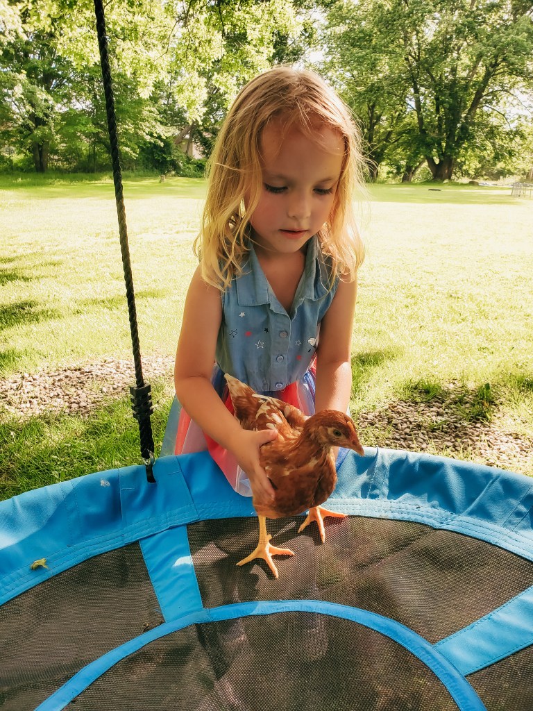 We expanded our family by six in April. My daughter is now the proud momma of six chickens. She has gone above and beyond my expectations with them. She is so gentle and caring. She is also the only one of us who can catch them. We are so excited for them to start laying some delicious eggs for us. My son finds joy in chasing them around saying, “chickies, peep peep!” Our dogs still do not know what to think about them, but my chocolate lab loves to find and eat their poop. It is disgusting and a waste of perfectly good fertilizer!