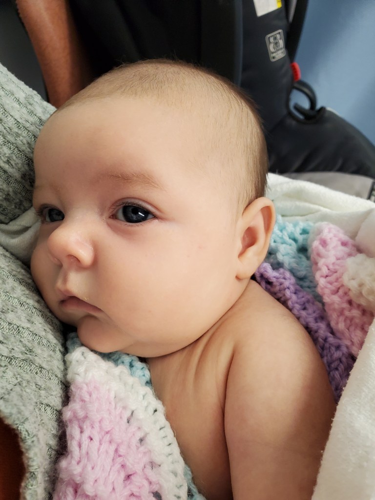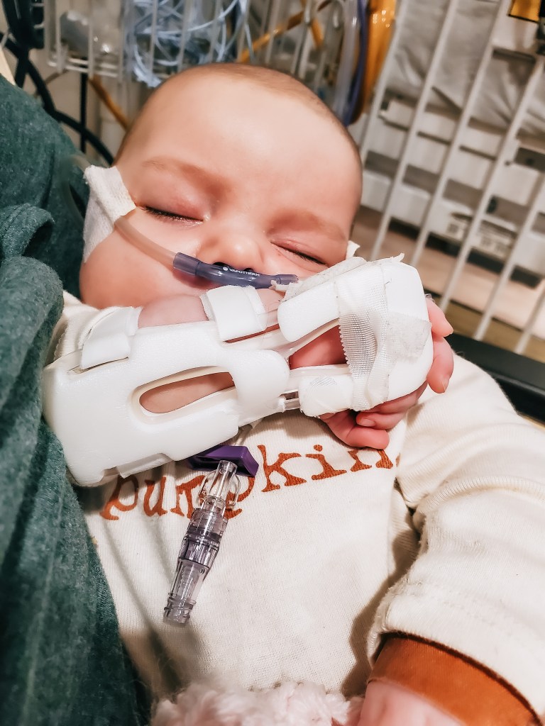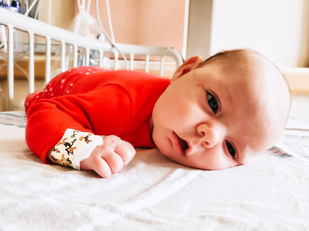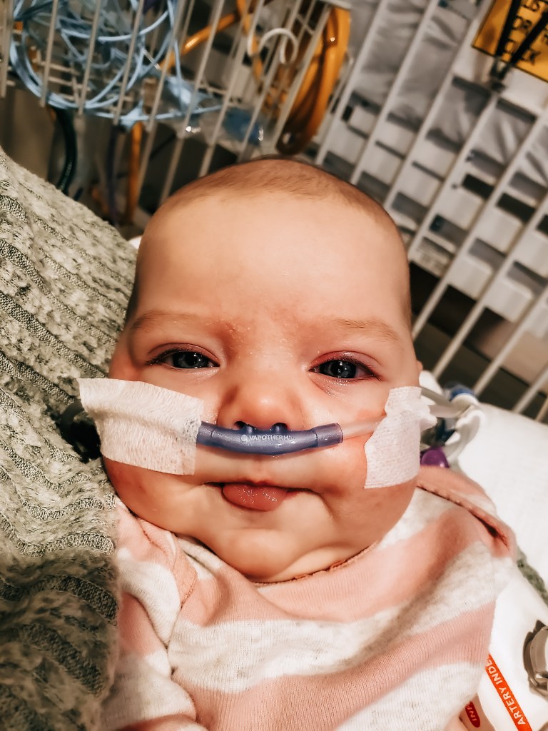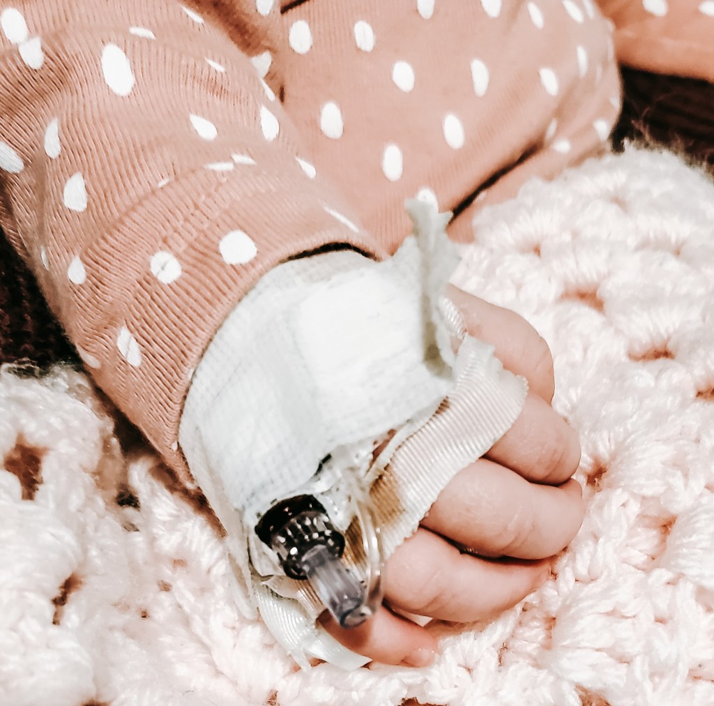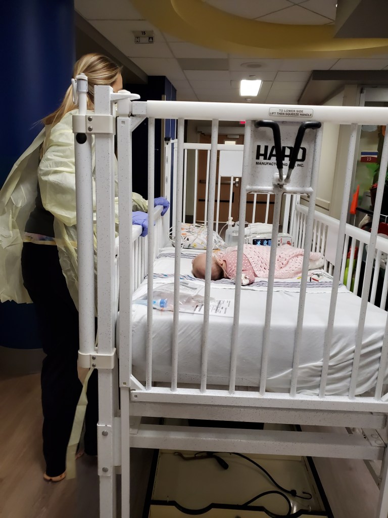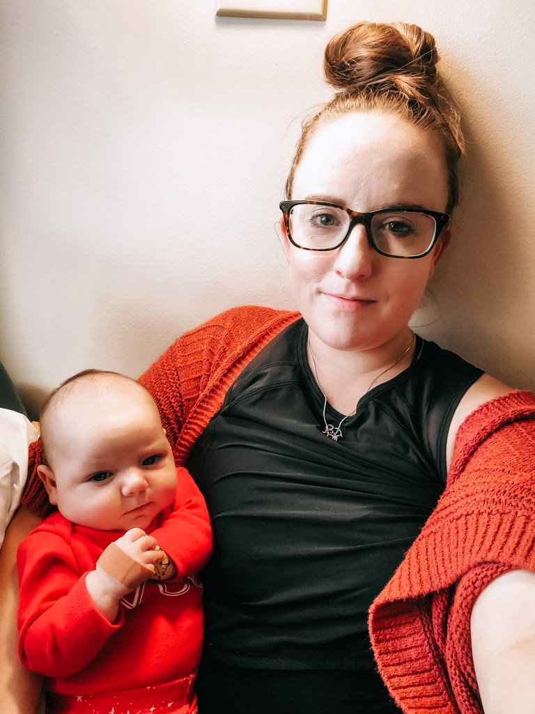 But alas, in November, after all three kids had been sick for the better part of a week, I recognized that sweet Evelyn’s work of breathing was becoming increasingly distressed. So the morning after Thanksgiving, I walked into the kitchen amongst yelling from my older two. Something to do about pancakes and told my husband I was taking Evelyn, 7 weeks at the time, to the ER.